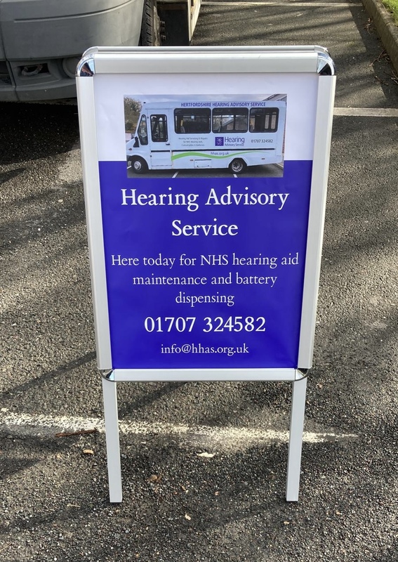 The mobile service has been running for a few months now and we are very grateful to all our venues. Here is a picture of the bus in Morrisons Supermarket, and our fancy new A frames.